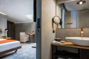 تحتوي جميع الغرف على تلفزيون بشاشة مسطحة وخزنة وميني بار وحمام خاص. ويتوفر أيضاً تراس أو شرفة في بعض الغرف. كما يتمتع الضيوف بأردية حمام ونعال ولوازم استحمام مجاناً لمزيد من الراحة.